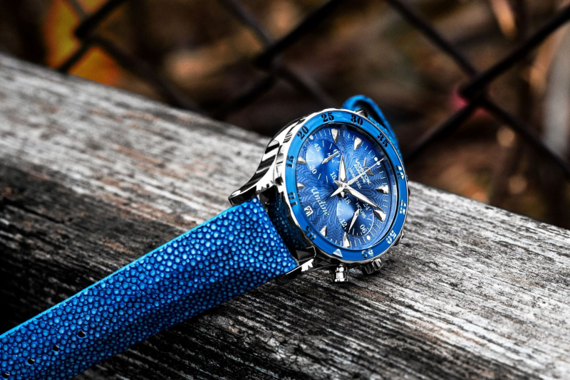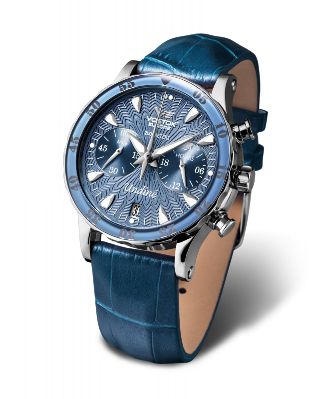 - ciferník: modrý gilošovaný, ručičky a indexy sú pokryté luminiscenčnou vrstvou