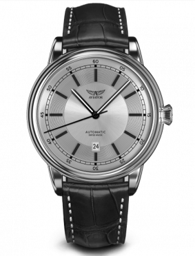 elegantné pánske hodinky AVIATOR Douglas DC-3 automatic so švajčiarskym mechanickým strojčekom s automatickým náťahom sa dodávajú na koženom remienku z s prackou butterfly (s dvojitým zapínaním).